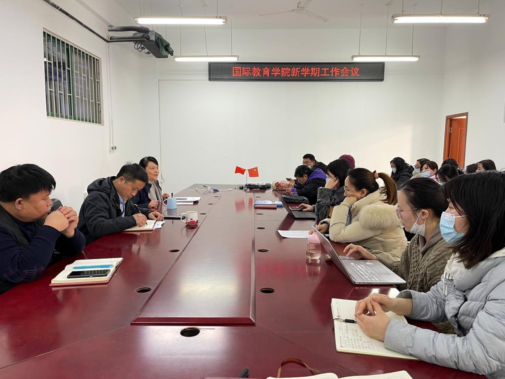 2月18日下午,国际教育学院在JX7405会议室召开2022年春季学期工作会议,学院全体教职工参加,会议由副院长郑瑾主持。