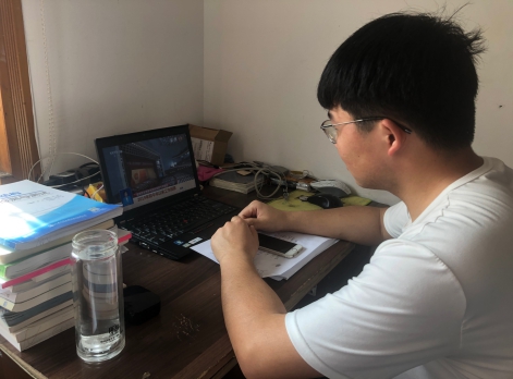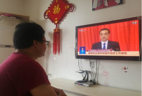 学生在家收看会议直播