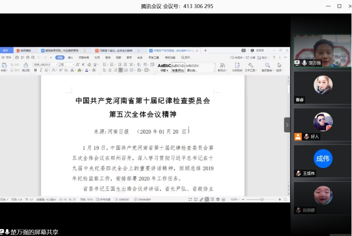 6月2日下午,国际教育学院在线上召开政治理论学习会,学习中国共产党河南省第十届纪律检查委员会第五次全体会议精神。学院全体教职工及党员参加,会议由学院党总支书记楚万强主持。