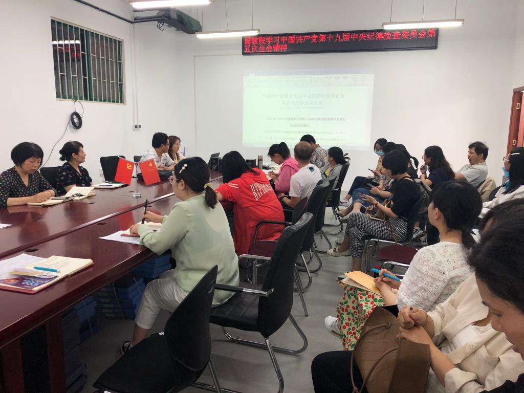 525日下午,国际教育学院在JX7408会议室召开了政治理论学习会,组织全体教职工学习中国共产党第十九届中央纪律检查委员会第五次全会及中国共产党河南省第十届纪律检查委员会第六次全体会议精神。会议由院长王爱琴主持。