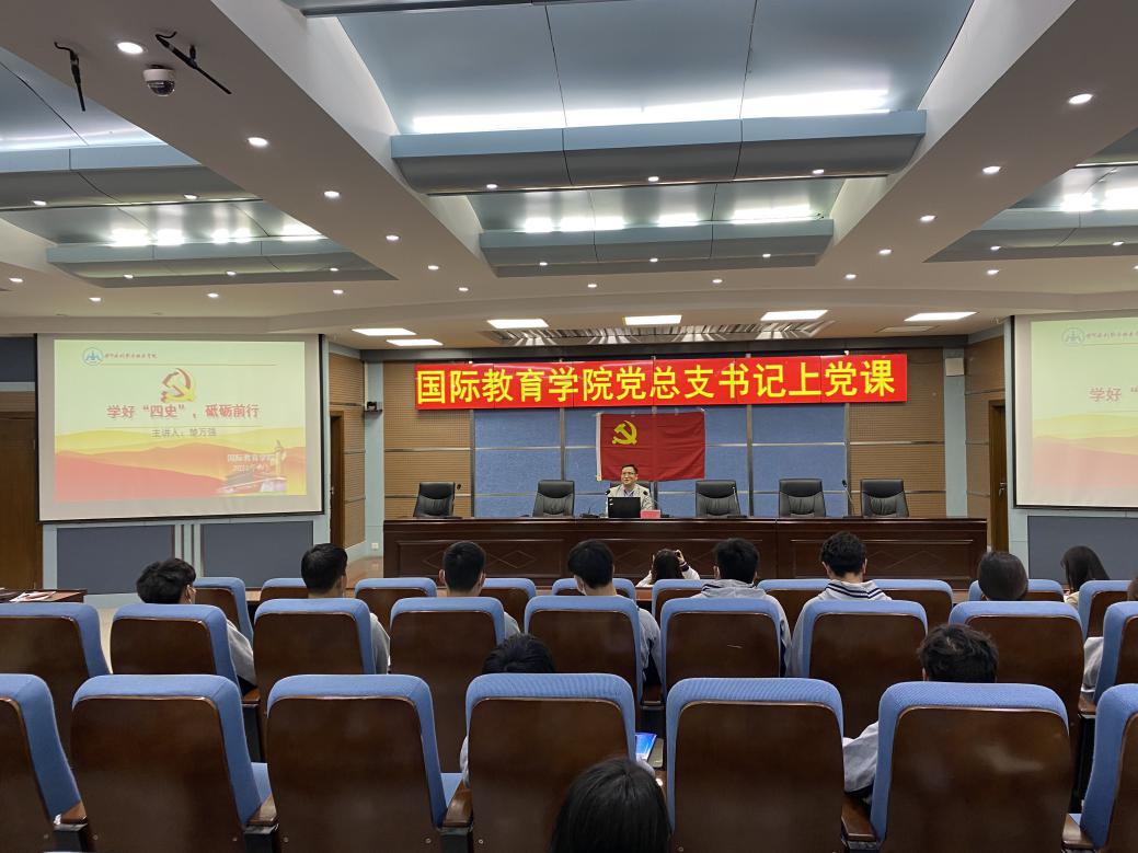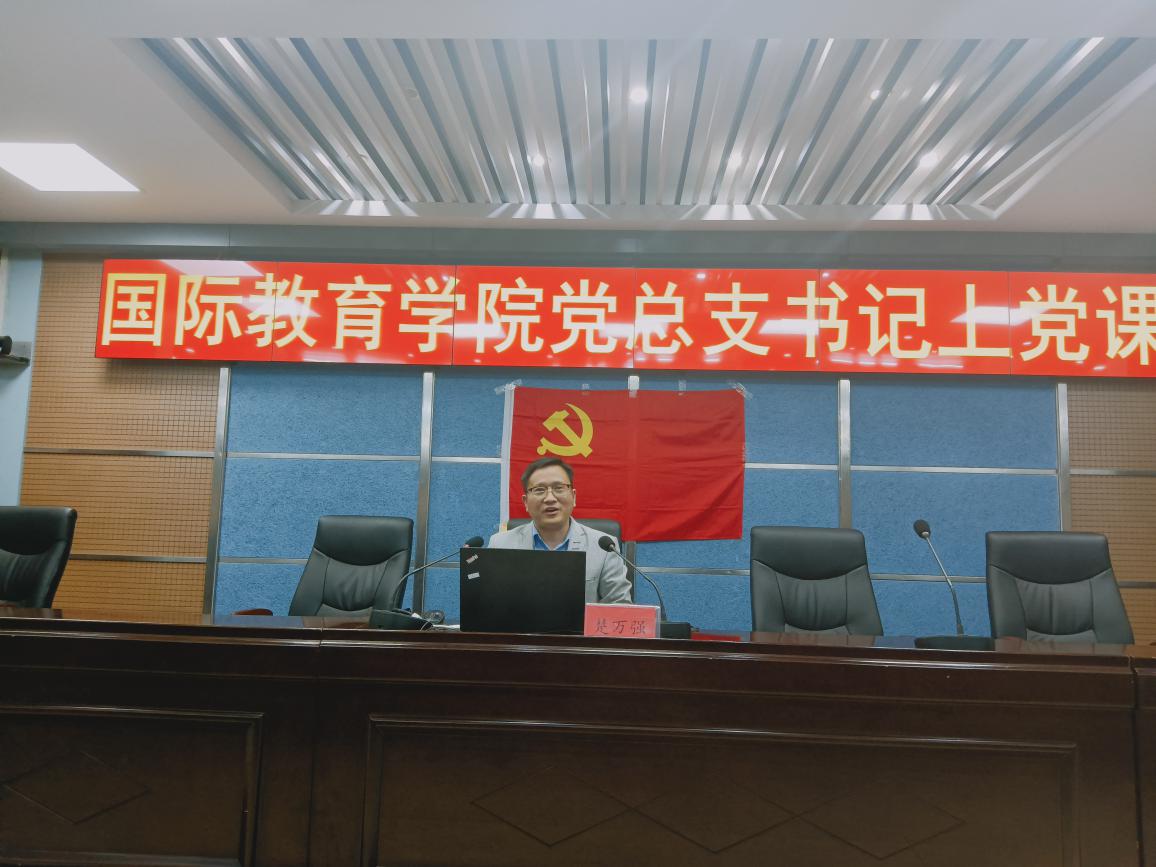 2021年4月29日下午,国际教育学院在三号实训楼报告厅开展2021年上半年党校学习培训。学院党总支书记楚万强、学生党支部书记曹睿、教师党员李小毅、赵晋萱、柴畅出席,本期党校全体学员参加。