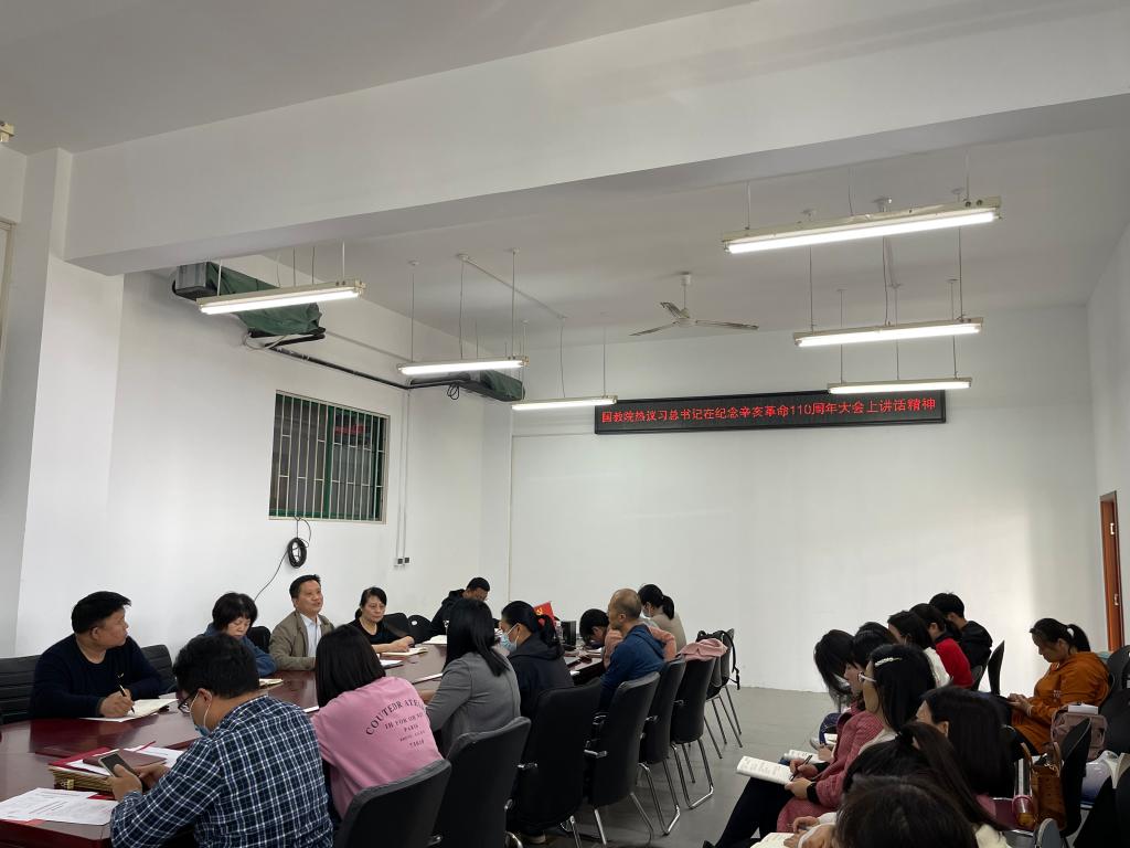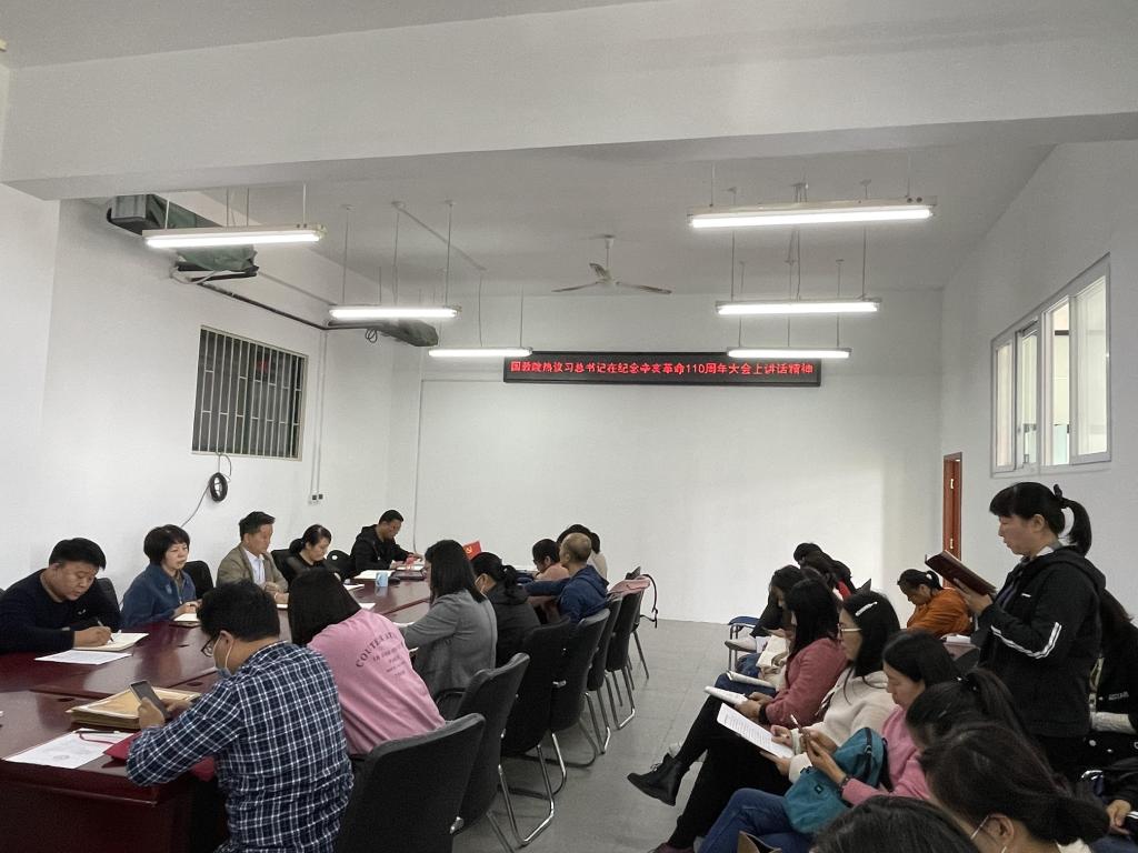 在会上,教工党支部副书记丁云霞领学了习近平总书记在辛亥革命110周年大会上的重要讲话精神,全体教职工发表热议,现场氛围热烈。