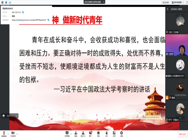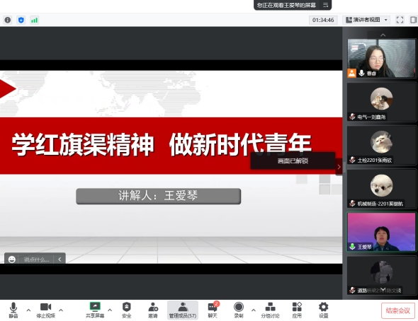 首先,王院长围绕“红旗渠精神源自什么”与同学进行了深入的交流。接着,以我校优秀毕业生吴祖太为修建红旗渠而牺牲的事迹为切入点,“吴祖太是红旗渠精神的象征,是值得我们学习的楷模,更是我校的引领”,并详细列举了同学们学习与生活中的案例,希望同学们能够真正领会红旗渠精神的内涵,用理论指导实践。