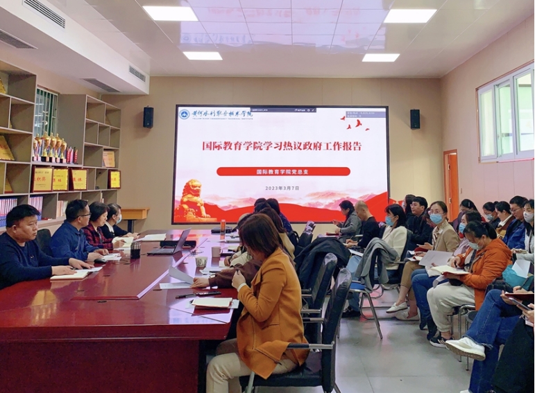 37日下午,国际教育学院在教学楼7408会议室召开全国两会精神专题学习会议,全院教职工参加并热议政府工作报告,会议由党总支书记楚万强主持。