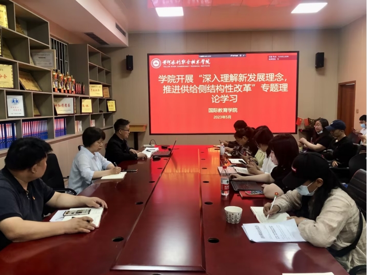 5月23日下午,国际教育学院在教学楼7408会议室组织专题理论学习,学习《习近平著作选读》中“深入理解新时代发展理念,推进供给侧结构性改革”全部内容。全体教职工参加,学习会由党总支书记楚万强主持。