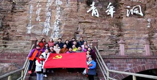 走出红旗渠纪念馆,党员们沿着红旗渠总干渠拾阶而上,来到红旗渠总干渠中最长的隧洞 —“青年洞”。看着千仞峭壁的山洞,大家深切感受了当年的党员青年昂扬的革命斗志和战天斗地的英雄气概,无不为此情此景感动、震撼!