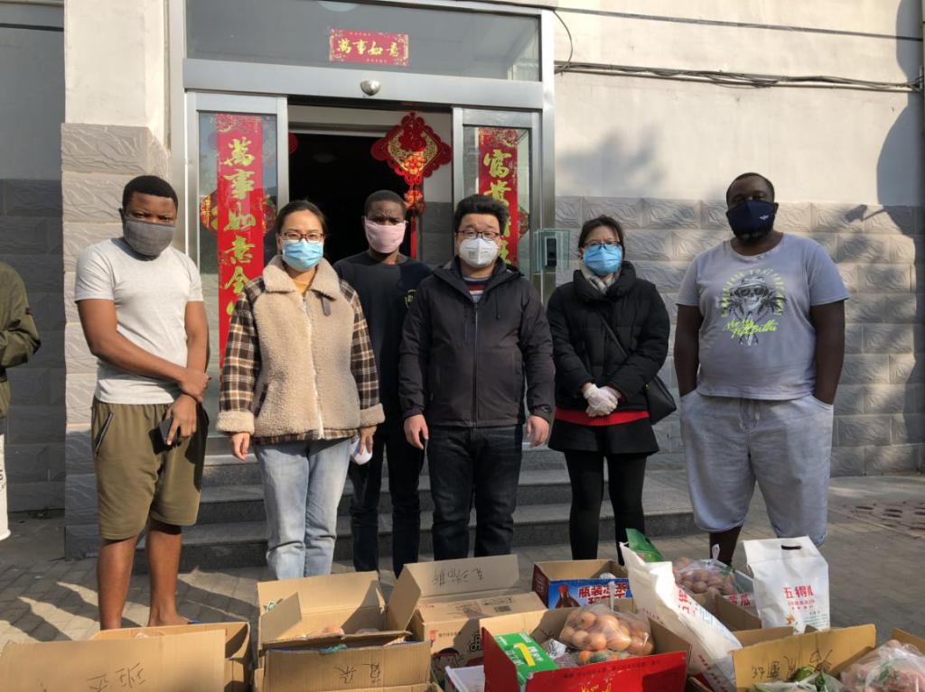 2月19日下午,国际教育学院党总支疫情防控党员先锋队再次来到留学生公寓,为学院留学生们送去了蔬菜、粮食等物资。