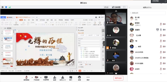 为庆祝中国共产党成立99周年,616日下午,国际教育学院党总支在线上开展了主题党课活动,国际教育学院党总支书记楚万强以《光辉的历程-99年中国共产党党史》为题,为全院所有党员和入党积极分子上了一节生动而又深刻的党课。