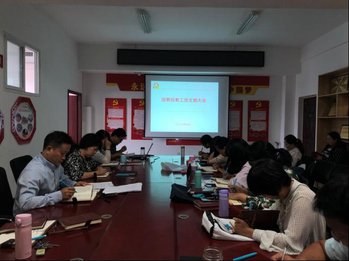 2019年9月24日下午,国际教育学院教工党支部在党员活动室召开支部大会。党支部全体党员参加大会。