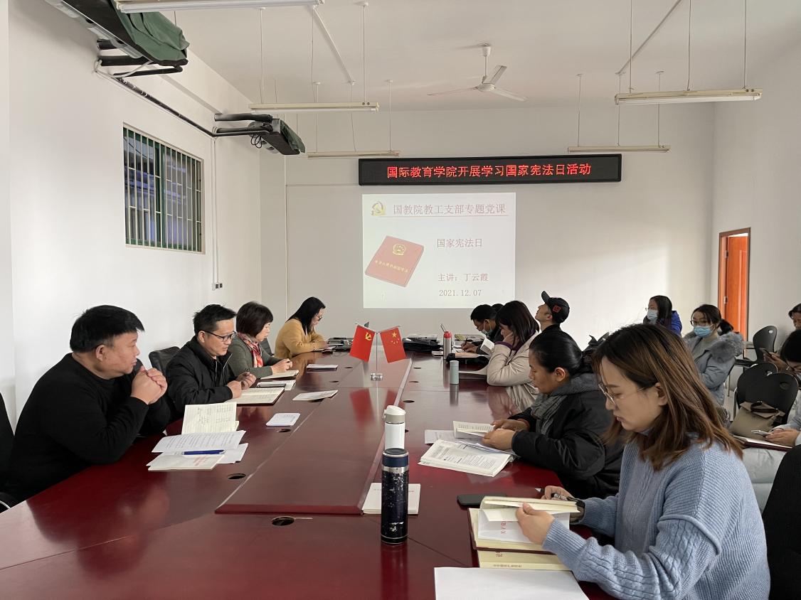 12月7日下午,学院教工支部副书记丁云霞老师为党员讲题为《国家宪法日》的党课,全院教职工党员参加,专题党课由院党总支书记楚万强主持。