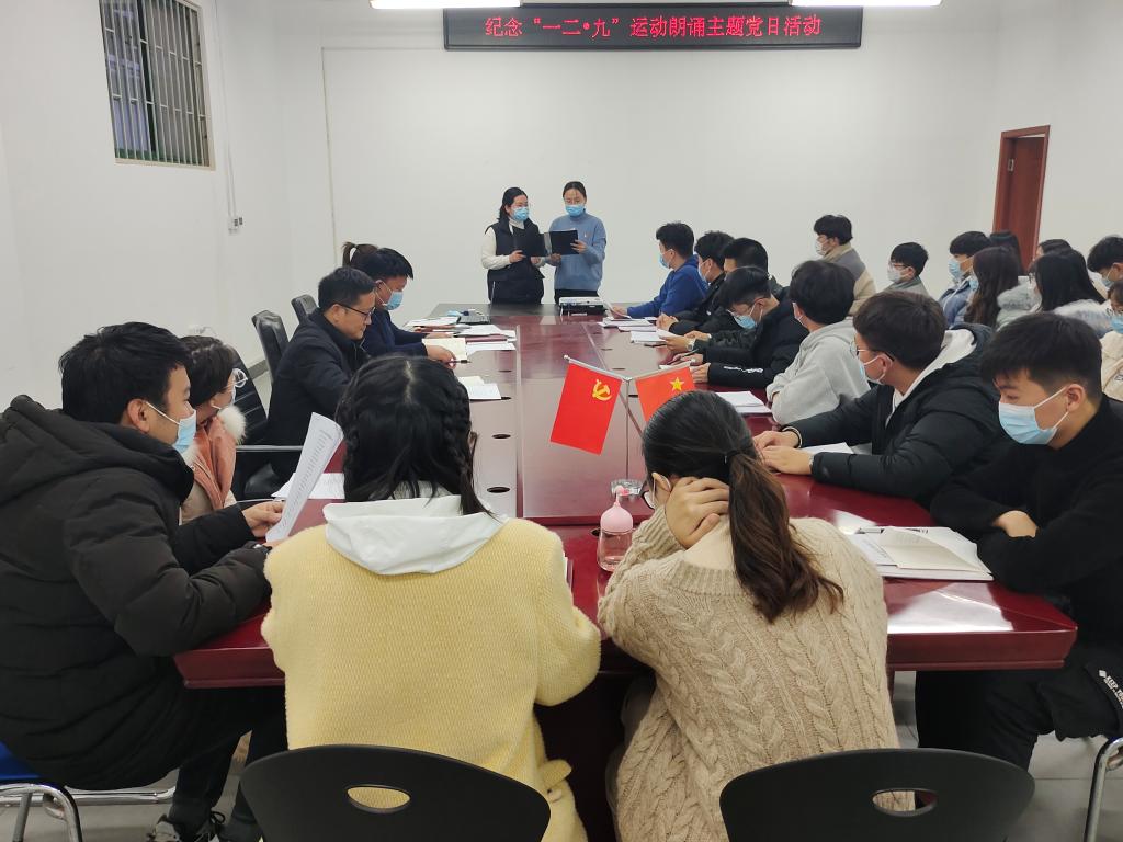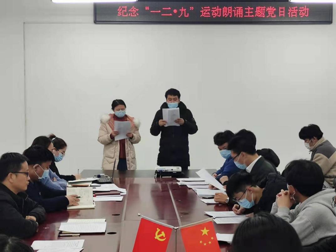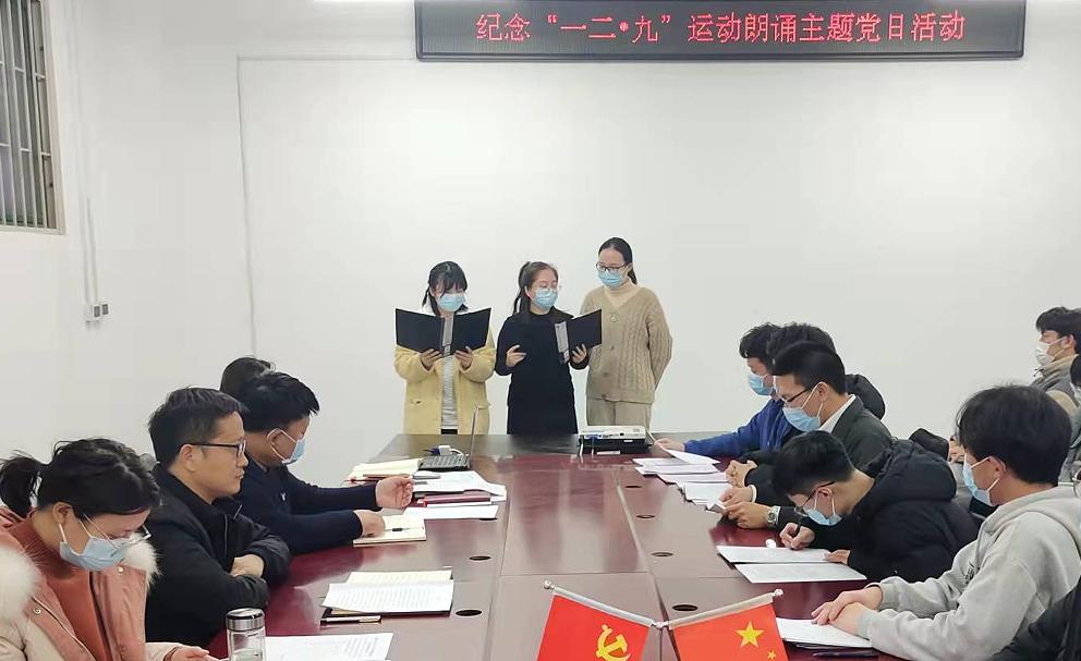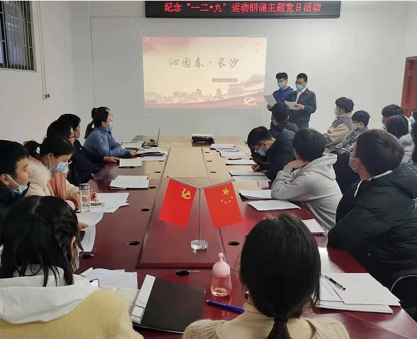 活动开始,支部师生党员们围绕着纪念一二·九运动,传承红色精神主题,声情并茂地朗诵一首首红色诗篇,铭记革命历史。《追随梦想》、《一九三五年,中国的野菊花》、《青春 中国》、《沁园春·长沙》……党员们深情回顾着中国曾经的苦难、述说着现在的成绩、展望着明天的美好。各具特色的朗诵、饱含深情的诠释,深深地触动了每位聆听者的心灵。