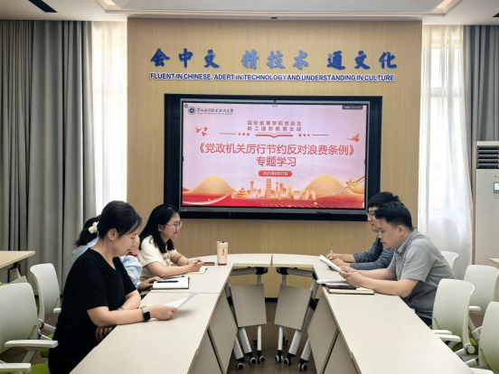 为深入学习党政机关厉行节约反对浪费条例,探讨新时代教育工作者的使命与担当。6月17日下午,教工国际教育支部书记吴丰在党员活动室(JX7122)讲授专题党课,全体教工支部委员参加专题学习。
