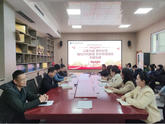 为深入学习贯彻习近平总书记关于加强党的作风建设的重要论述,锲而不舍落实中央八项规定精神、推进作风建设常态化长效化。10月14日下午,国际教育学院教工党支部书记吴丰在JX7408党员活动室以“强化作风教育 筑牢思想堤坝”为主题,为全体教工党员讲授了一堂深刻而生动的专题党课。
