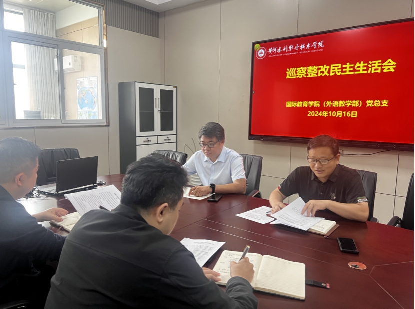 2024年10月16日下午,国际教育学院在教学楼7408会议室召开学校第三届党委第一轮巡察整改专题民主生活会,旨在深入贯彻落实学校党中央决策部署,认真总结巡察反馈意见,全面查找问题,制定整改措施,确保巡察整改工作取得实效。