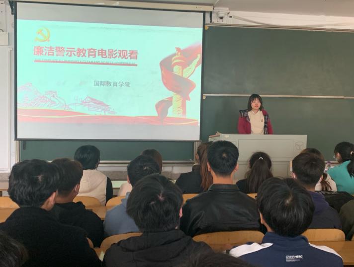 2021年10月26日中午一点,国际教育学院党总支兼职纪检员黄海燕组织21级全体学生干部观看廉洁教育警示电影。