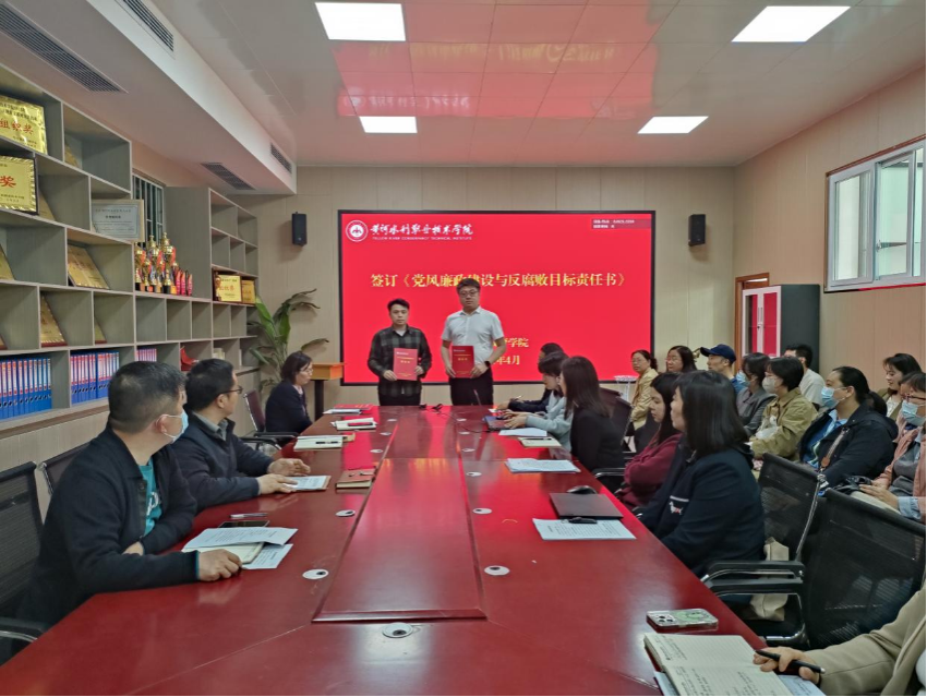 仪式上,书记楚万强和院长卫宗超分别与学院中层副职、科级干部、教研室主任签订了《党风廉政建设和反腐败工作责任书》。通过正式签署党风廉政建设和反腐败工作责任书,进一步明确了党风廉政建设和反腐败工作的责任主体、责任范围、责任内容,确保各项责任落到实处。进一步明确了领导干部反腐倡廉的思想道德防线,增强了廉洁自律意识,为学院构建起了坚不可摧的防腐机制,即不敢腐、不能腐、不想腐的坚实基础,从而确保了学院长期稳定发展。