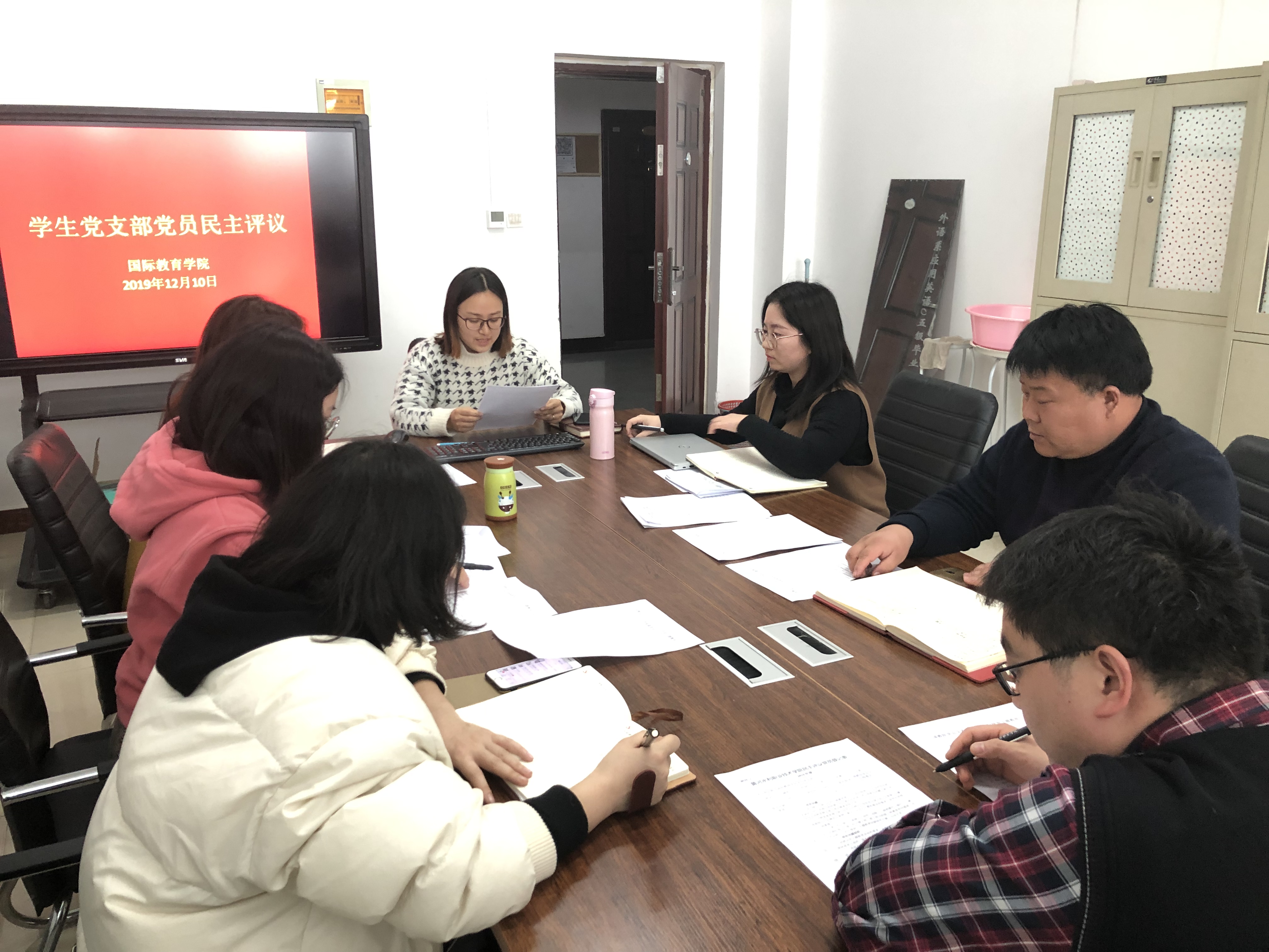 根据《关于第二批主题教育单位基层党组织召开专题组织生活会和开展民主评议党员的通知》文件要求,进一步引领学生支部党员提升党性修养,结合工作、学习实际,12月10日下午,国际教育学院学生党支部组织开展了“不忘初心、牢记使命”专题组织生活会和民主评议党员会。学生支部全体党员参加,会议由支部书记曹睿主持。
