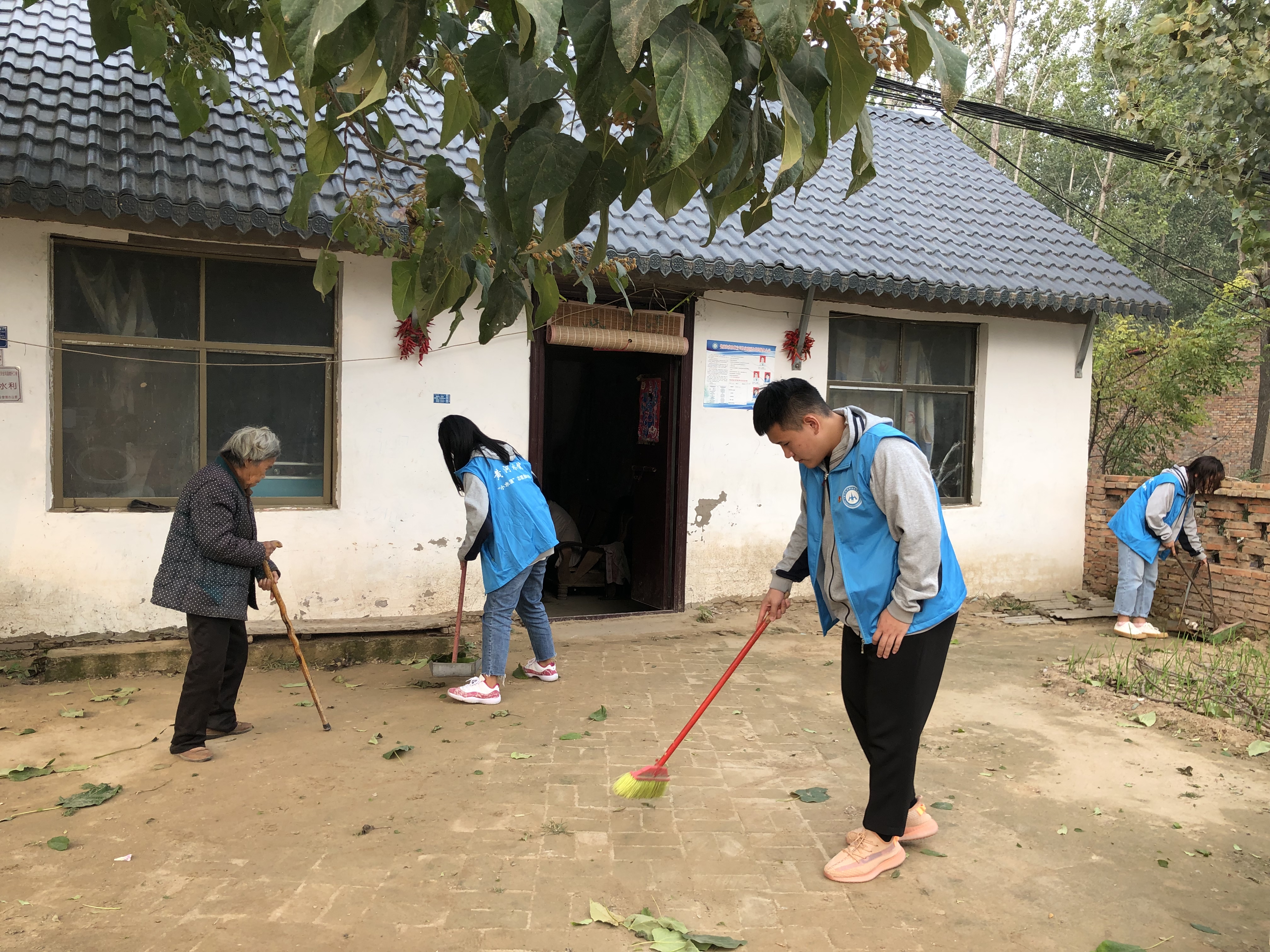 我院帮扶工作组成员检查贫困户院内、屋内卫生,并督促有劳动能力的人进行打扫。在帮扶过程中,楚万强带领工作组和学生党员帮助没有劳动能力的贫困户打扫了院内卫生,整理内务,帮助贫困户们树立卫生安全生活及卫生安全生产意识。