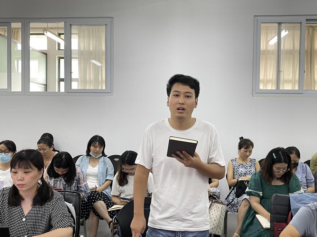 随后,院长王爱琴就教师们的热议发言。她结合自身讲述了师生间的感人故事,并分享了宝贵的育人经验。在讲话中,王爱琴对全体教职工提出要求,希望大家能够牢记立德树人初心,在不同的工作岗位上,全身心地投入到育人工作中去,为学生立榜样,为学生办实事,真正把为学、为事、为人统一起来,当好学生成长的引路人,做黄大年式教师。