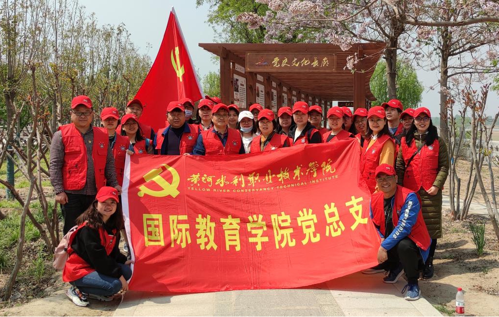 2021 年4月19日,国际教育学院党总支组织教职工前往黄河黑岗口沿岸开展清捡垃圾、美化环境志愿服务活动,学院有26名教师参加,院党总支书记楚万强亲自带队。