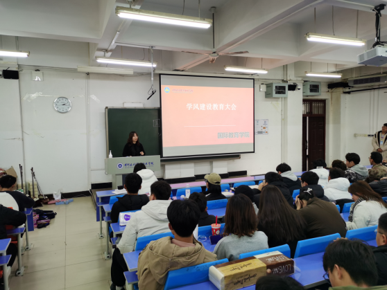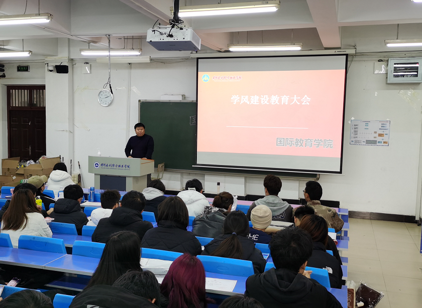 12月17日中午,国际教育学院在教学楼2302教室召开了学风建设教育大会学院党总支副书记王成伟、分团委书记曹睿以及辅导员黄海燕和李小毅老师出席,2019级、2020级学生干部参加,会议由曹睿老师主持。
