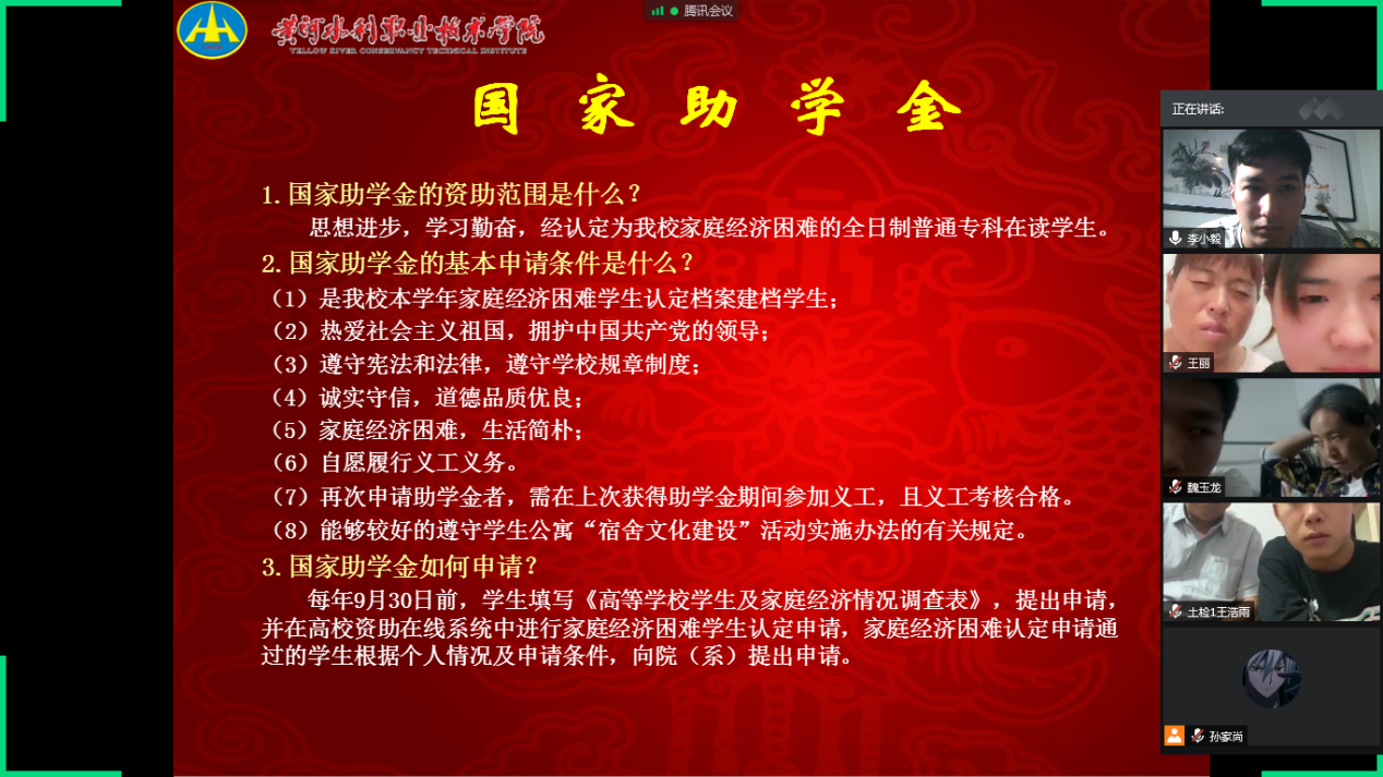 受疫情影响,此次家访活动仍然采取的是视频家访的形式,会议开始由资助助理为各家长简单的介绍了各位受资助学生在校的基本情况,对各位同学在校一年的学习、生活情况进行了简单的总结。其次,资助专员通过与家长交谈,详细地了解了困难学生的家庭情况,并听取家长对于学校各方面工作的意见和建议,最后资助专员李小毅为各家长详细的讲解了我院的资助政策,希望各位家长积极配合学校的资助工作,同时鼓励困难学生能够自强不息,圆满完成学业。最后,资助专员嘱咐各位家长以及学生在家一定要做好疫情防控工作,保证好自身的安全和健康。