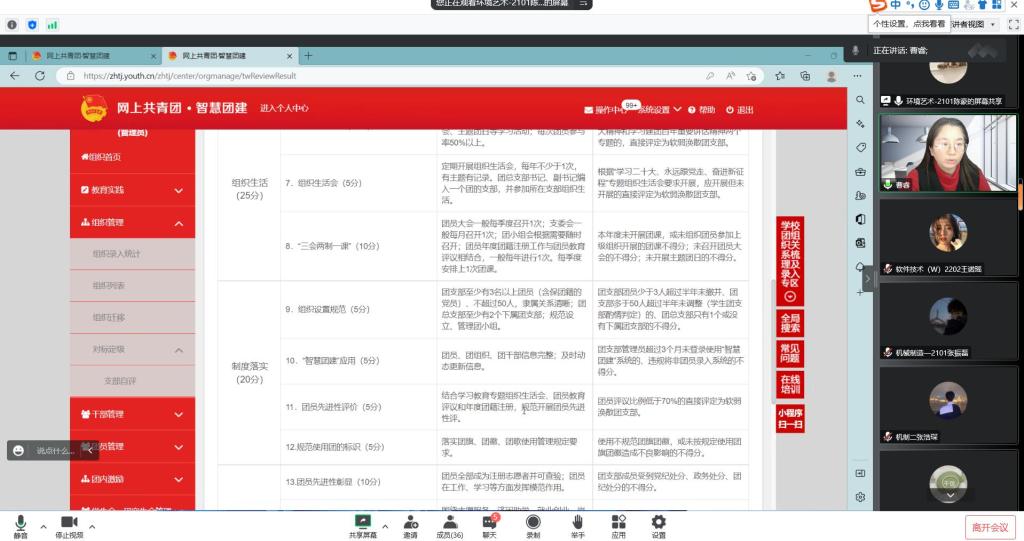 会上,组织部学生干部重点介绍了智慧团建系统平台的操作和使用,详解了录入三会两制一课、团员教育评议、年度团籍注册、对标定级、学社衔接等工作的具体要求,并对各团干部提出的问题进行了一一解答。