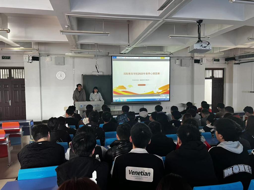 3月14日,2022级辅导员李小毅和心理指导老师黄海燕在教学楼2302组织开展了国际教育学院2023年春季心理普测。