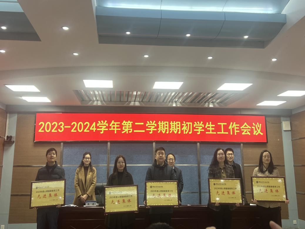 2月28日上午,我校在3号实训馆学术报告厅召开新学期学生工作会议。在2023年度学生工作先进集体和个人表彰工作中,国际教育学院荣获“2023年度心理健康教育工作中荣获先进集体”称号,心理指导老师黄海燕荣获“心理健康教育工作先进个人”称号,土木检测(w)2101班组织召开的“学习党的二十大,阳光新征程”心理主题班会荣获校级一等奖。