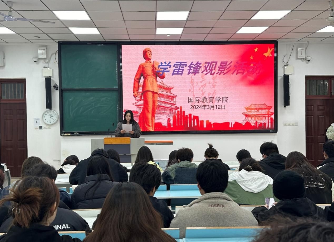 为弘扬雷锋精神,传承红色文化,3月12日,国际教育学院在JX6101举办主题观影活动,国际教育学院各级学生代表参与了此次活动。