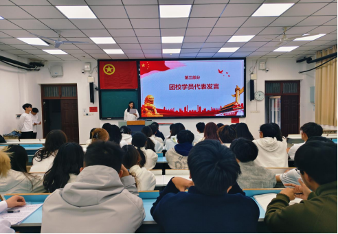 114日,国际教育学院分团委在JX6101教室举行2025-2026学年第一学期业余团校开班典礼,学院党总支副书记赵巍,各年级辅导员及全体学员参加,团校开班典礼由院分团委书记黄海燕主持