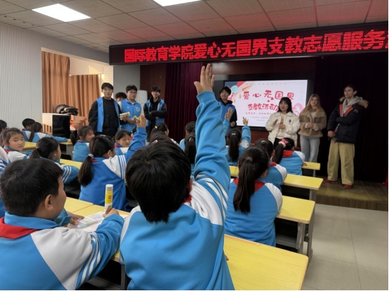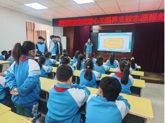 12月9日,国际教育学院水润世界志愿服务队前往开封市西门大街小学开展“爱心无国界”支教志愿服务活动。分团委书记黄海燕,辅导员胡宇涵,赵芳芳及中外志愿者参加。