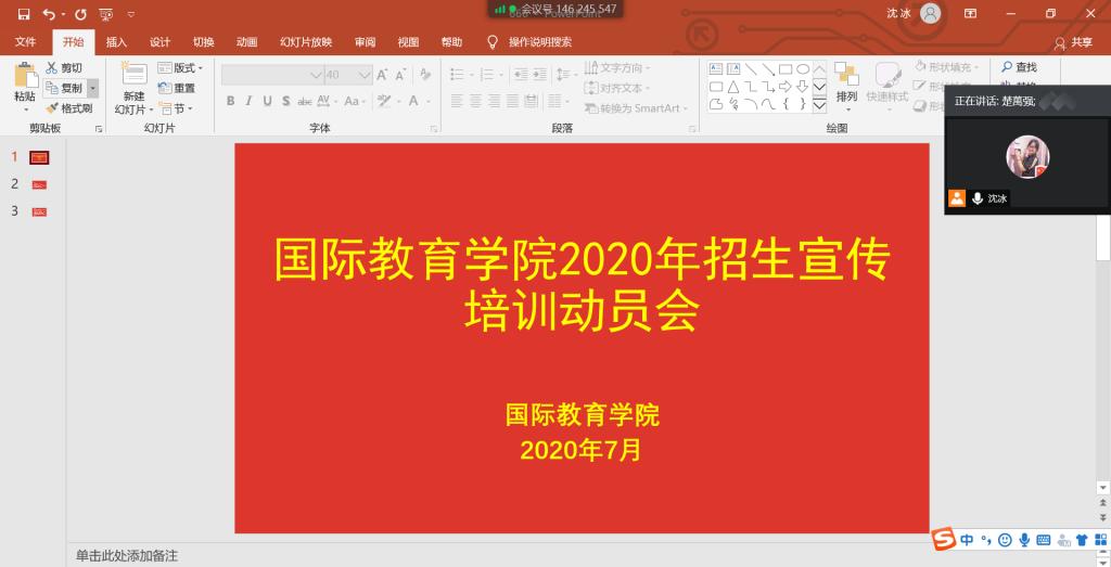 7月5日,我院召开腾讯会议召开2020年招生宣传工作培训动员会,参会人员有国际教育学院党总支书记楚万强、校企合作主任沈冰和所有参加招生宣传工作的学生。