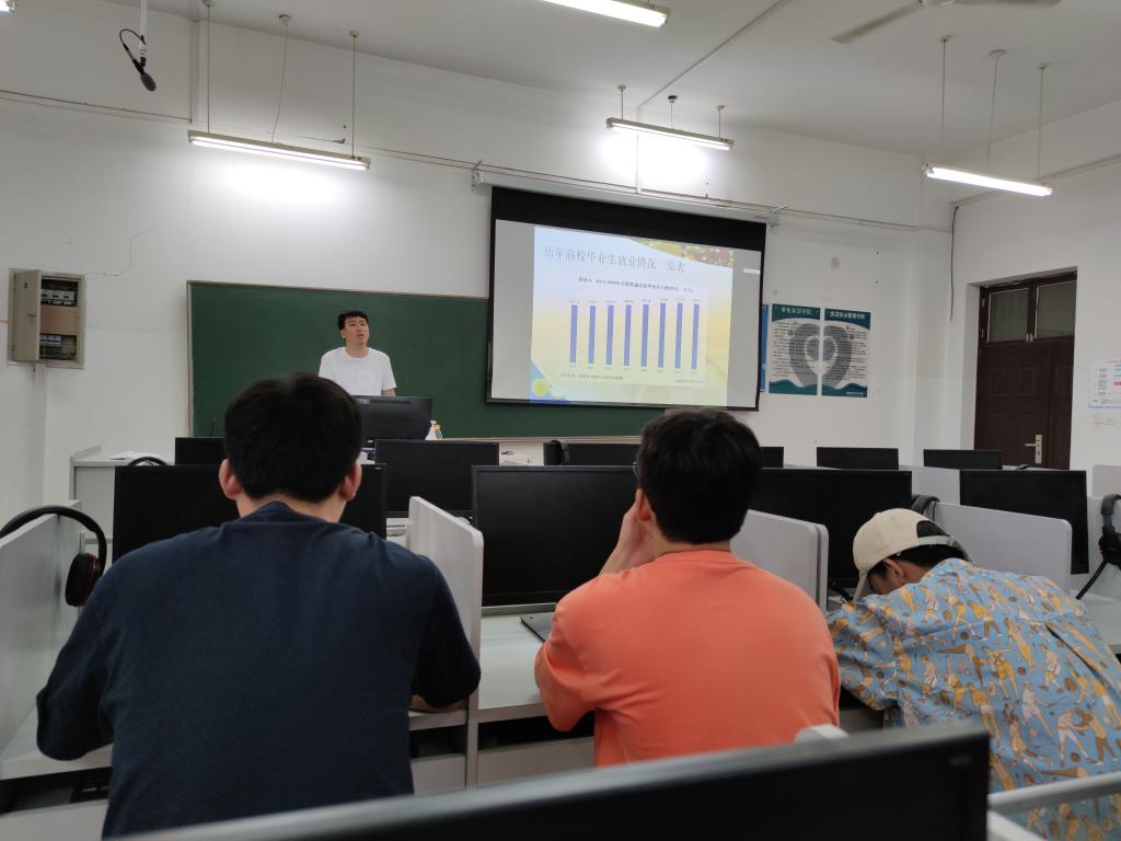 5月21日晚上18:30,我院在教学楼7410举办就业指导讲座。本次讲座邀请了国际教育学院辅导员李小毅为主讲嘉宾,出席本次讲座的为2022届各班代表学生。