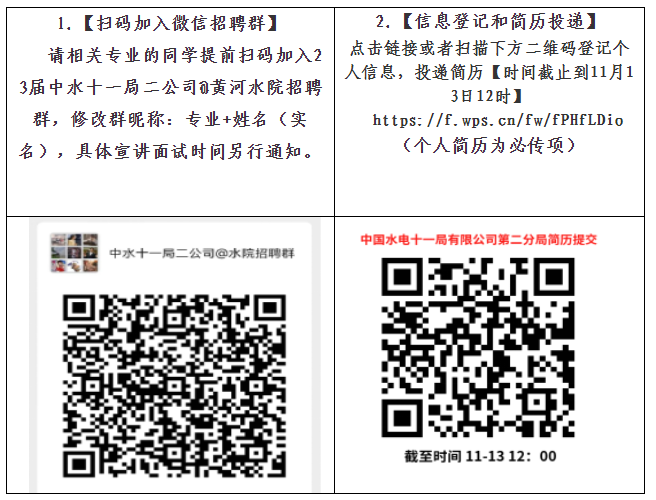 中国水电十一局有限公司第二分局拟在我校招聘水利水电建筑工程、水利水电工程技术(水利水电工程施工技术)、水利水电工程技术(水利水电工程检测技术)、安全技术与管理、水利工程(水生态修复工程技术)、水利工程(城市水利工程)、港口航道与治河工程、建设工程监理(水利工程监理方向)、工程造价(水利工程造价方向)、水电站动力设备、水文与水资源工程、水文与工程地质、水土保持、建筑工程技术、建筑工程技术(建筑工程质量与安全技术管理)、道路桥梁工程技术、工程造价、给排水工程技术、土木工程检测技术、工程测量技术、测绘地理信息技术、测绘工程技术、地籍测绘与土地管理、机电一体化技术、机械设计与制造、工程机械运用技术、工业机器人技术、摄影测量与遥感技术(无人机测绘技术)等相关专业2023届毕业生,就业信息网已签约毕业生,不用重复报名,单位无法再次发起邀约!此次招聘方式采用线上招聘,相关通知如下,请按要求做好准备: