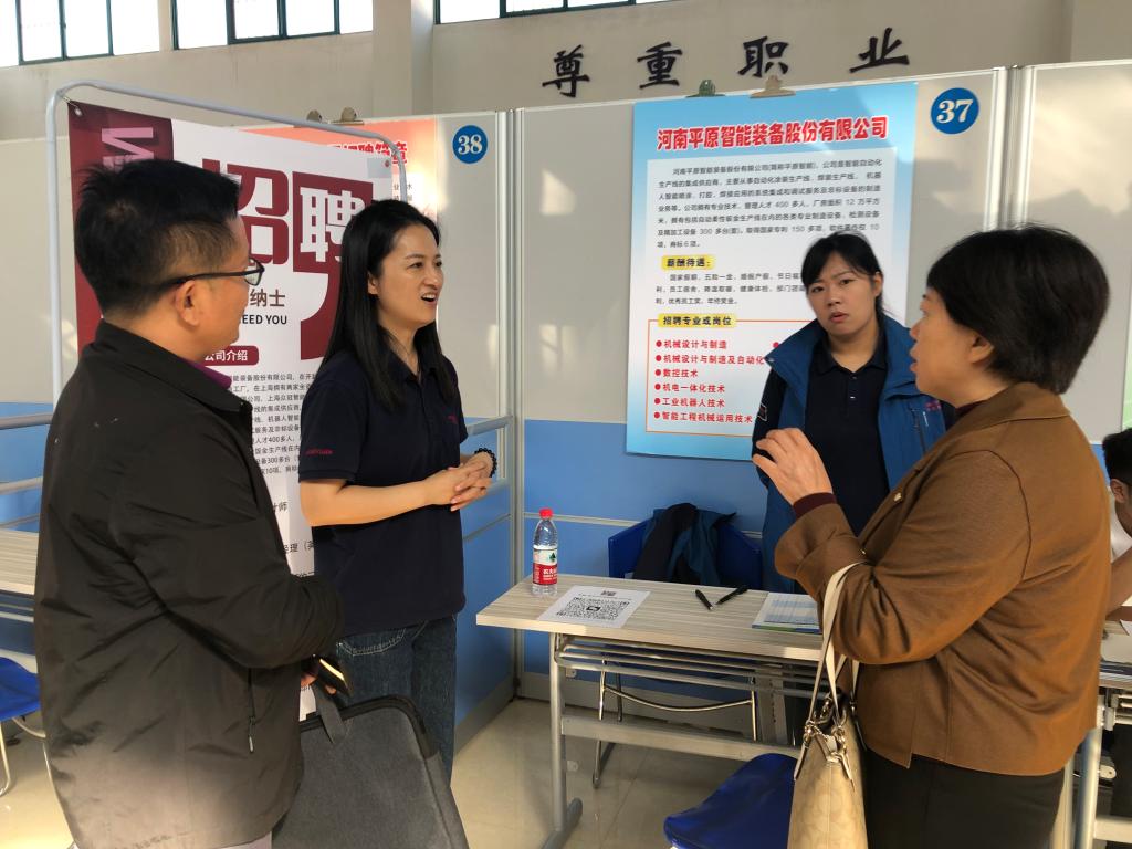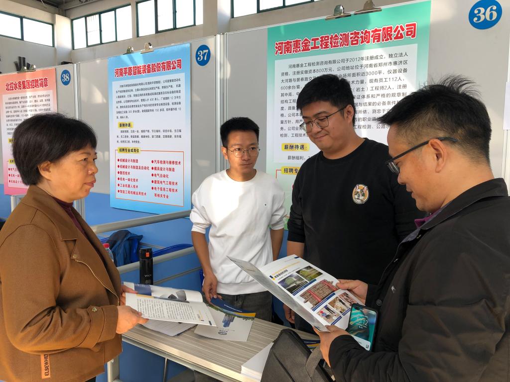 党总支书记楚万强和院长王爱琴与河南惠金工程检测咨询有限公司、河南中尚工程咨询有限公司、河南平原智能装备股份有限公司等企业代表亲切交谈,详细询问了企业招聘需求和学生专业所学的匹配度,对各企业积极到校选拔人才表示热烈的欢迎。辅导员在现场为学生答疑解惑,帮助学生顺利应聘。