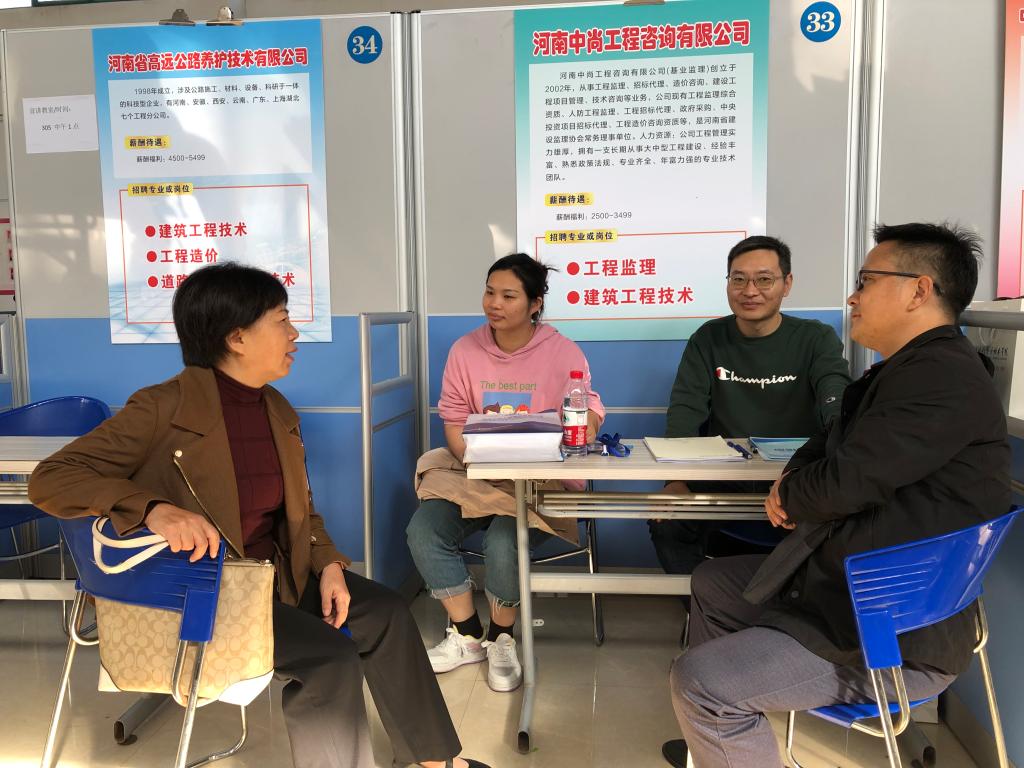 近日我院联系邀请了河南惠金工程检测咨询有限公司、河南中尚工程咨询有限公司到校参加10月20日举办的“2024届毕业生双向选择洽谈会”。学院领导、校企合作办主任和毕业班辅导员到现场走访相关企业,并指导学生求职应聘。