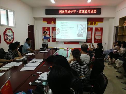 6月4日下午,国际教育学院在SY5503会议室开展了“端午节·道德经典诵读”主题活动,我院全体教职工参加了本次活动。活动由王慧老师主持。