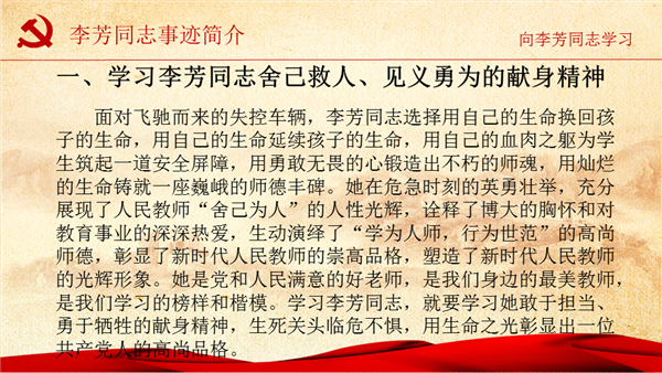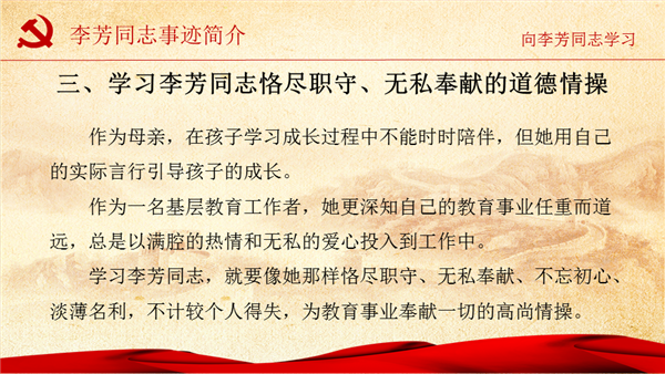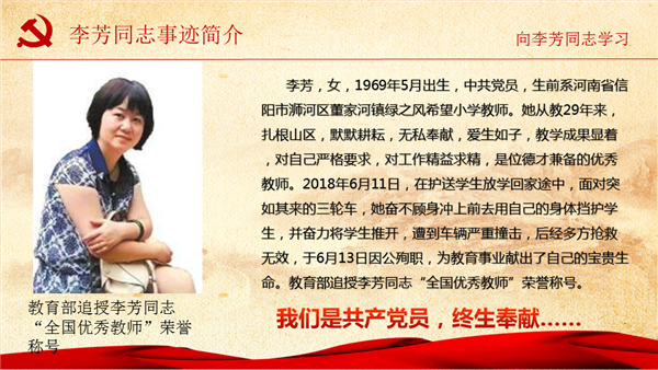 向李芳同志学习--争做“四有”好老师