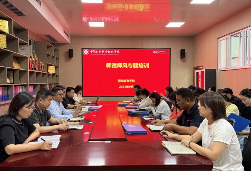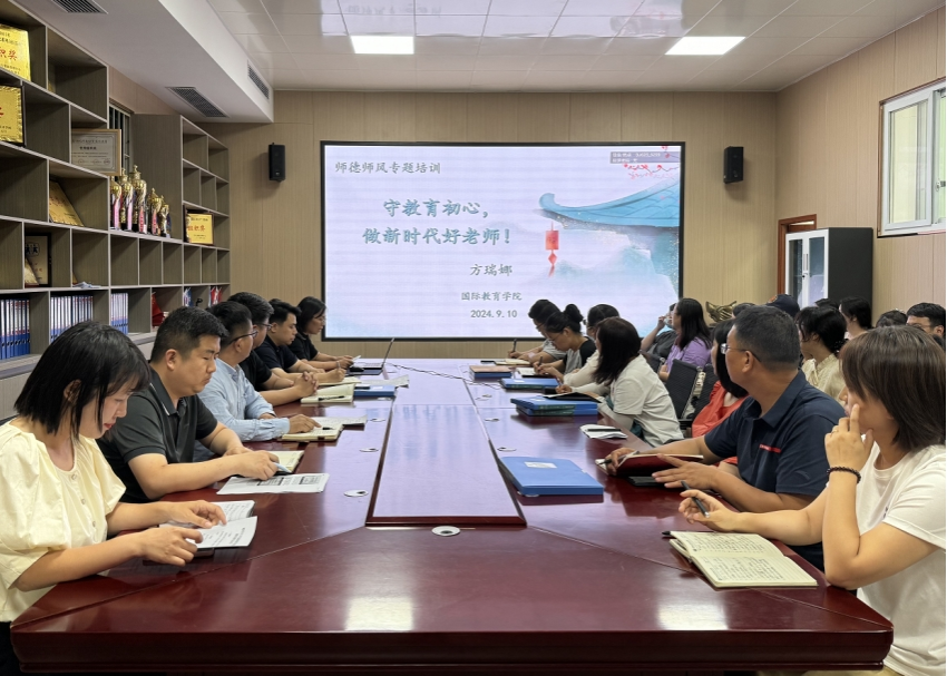 910日下午,国际教育学院在JX7408会议室开展师德师风专题培训,深入学习《中共中央、国务院关于弘扬教育家精神加强新时代高素质专业化教师队伍建设的意见》等文件精神。