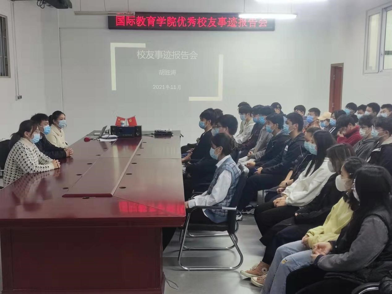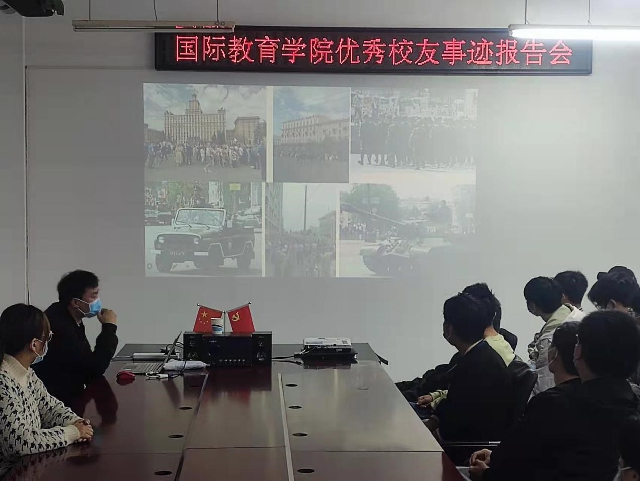 2021116日下午,国际教育学院优秀校友事迹报告会在JX7408举行。本次报告会邀请到2019届校友胡胜涛做《我的俄罗斯留学生活》专题报告会,中俄班辅导员孟晶晶,2020届有出国意向的部分学生代表参加了报告会,会议由校企合作主任沈冰主持。