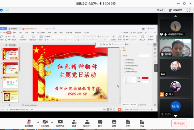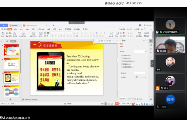 6月2日下午,国际教育学院党总支在线上开展了“红色精神翻译”主题党日活动,具体围绕“焦裕禄精神翻译”进行学习和研讨。国教院全体党员参加了此次活动,活动由教工党支部委员卢俊青主持。