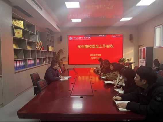 根据我校学生管理工作安排,切实落实学生安全管理工作任务,1月17日,国际教育学院在JX7408召开学生离校安全工作会议,分团委书记曹睿、各年级辅导员参会,会议由国际教育学院党总支副书记赵巍主持。