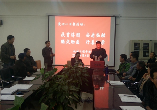 为大力弘扬“扶贫济困、乐善好施”的中华传统美德,11月3日至11月10日,我校积极响应市委、市政府开展“爱心一日捐”活动的号召,按照市文明办统一部署和安排,我校将“爱心一日捐”等扶贫帮困工作作为促进精神文明建设、履行社会责任的重要载体,组织开展了“爱心一日捐”活动。