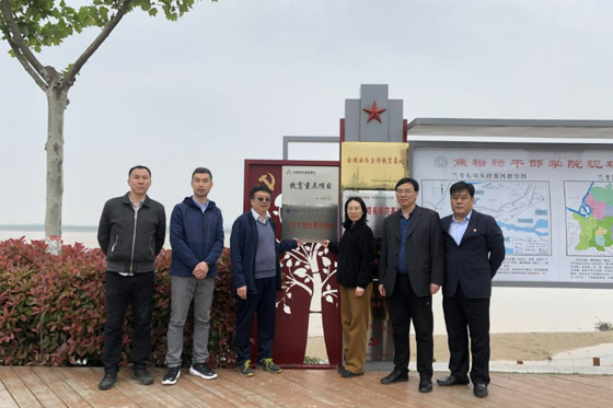 2021年4月25日,黄河水利职业技术学院与兰考黄河河务局共建的大学生德育教育基地挂牌仪式在黄河东坝头举行。水利工程学院党总支书记孙天星,兰考黄河河务局局长胡云英共同为德育教育基地挂牌。水利工程学院教授梁建林,校企合作办公室主任陶攀,兰考黄河河务局副局长高钊、雷晓明出席了挂牌仪式。胡云英对孙书记一行的到来表示热烈欢迎。作为黄河水院的毕业生,胡云英对母校的培养表示感谢,对母校入选“双高计划”建设单位及建设取得的成绩感到非常自豪,对共建大学生德育基地提出了展望,并表达了校企优势互补共同做好大学生德育教育的殷切希望。