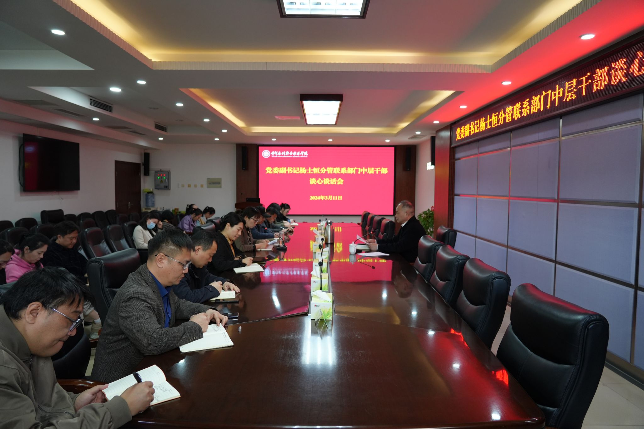 3月11日下午,党委副书记、工会主席杨士恒在行政楼第一会议室主持召开分管联系部门中层干部谈心谈话会议,党委组织部、党委宣传部、离退休工作处、工会、团委及旅游学院的领导班子参加会议。