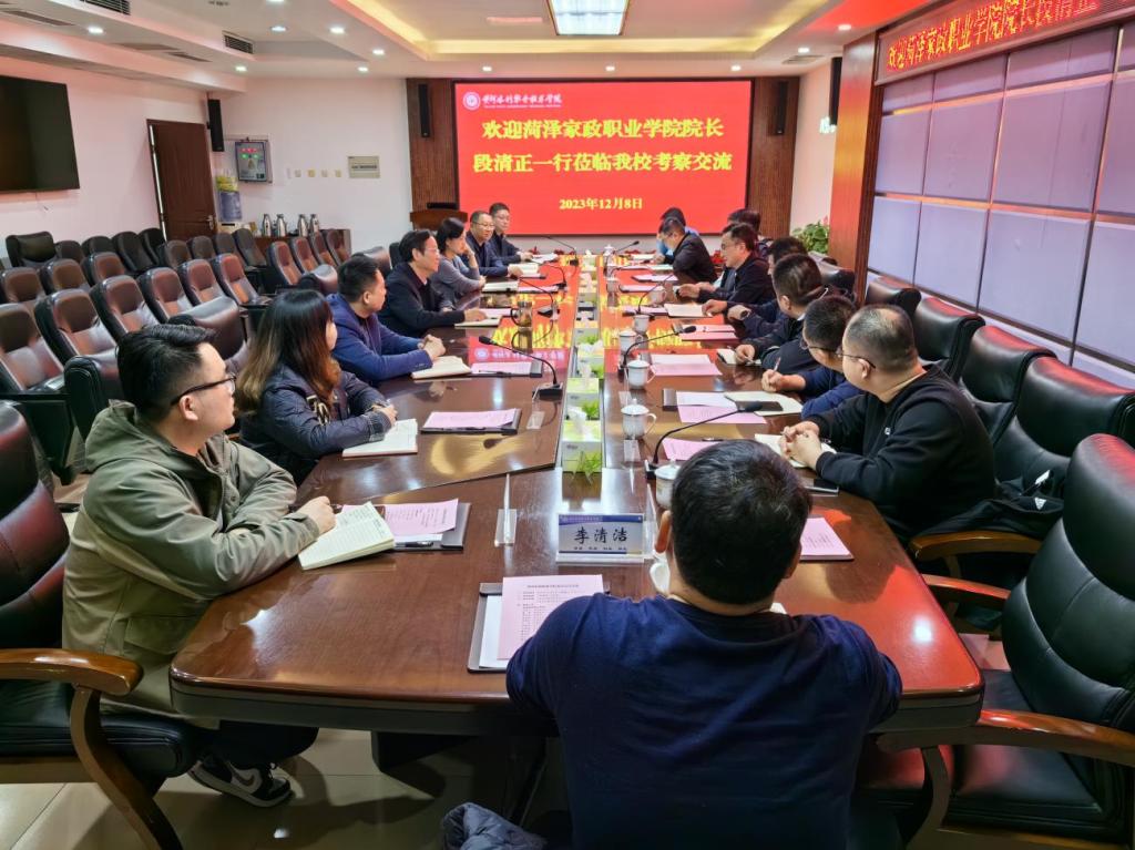 12月8日下午,菏泽家政职业学院党委副书记、校长段清正,党委委员、副校长鲁彬一行11人到我校考察交流信息化建设工作。我校副校长刘守义及党政办公室、科技处、学生工作部、后勤管理服务中心、信息化管理办公室等部门负责人参加座谈会。座谈会在我校行政楼第一会议室召开。