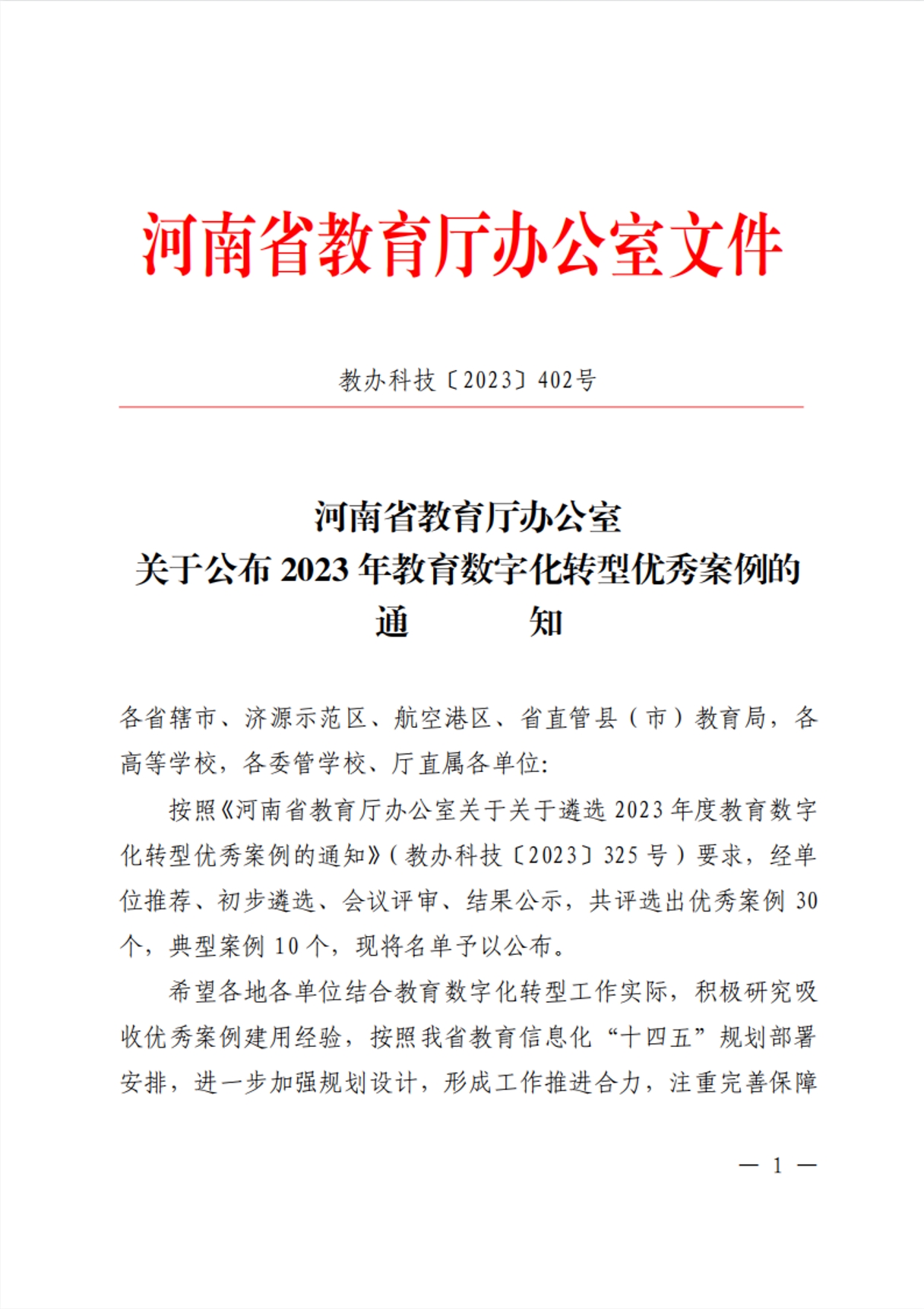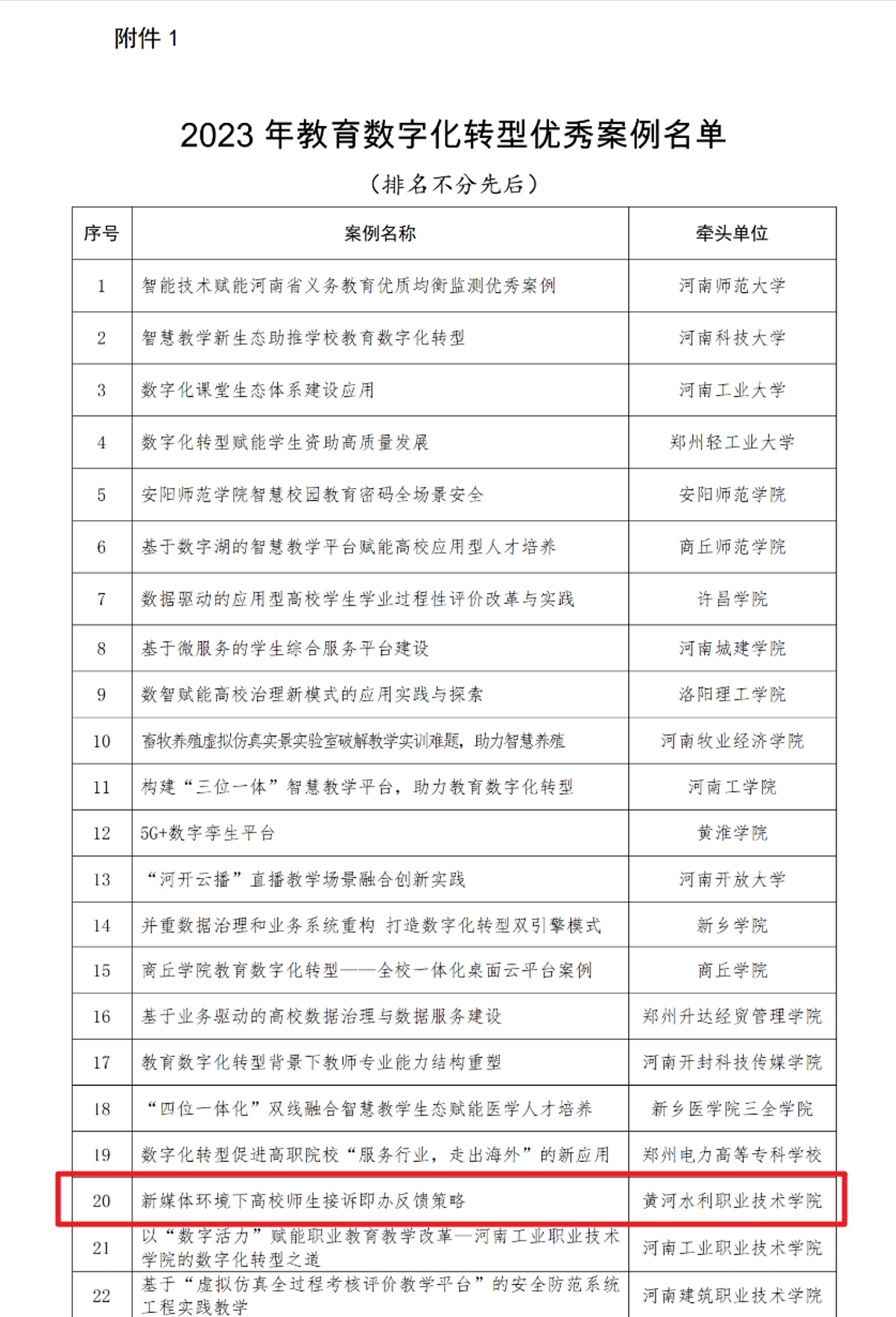 11月8日,河南省教育厅印发了《河南省教育厅办公室关于公布2023年教育数字化转型优秀案例的通知》(教办科技〔2023〕402号),公布了本年度评选结果名单,在本次活动中共评选出优秀案例30个,典型案例10个。其中,我校申报的《新媒体环境下高校师生接诉即办反馈策略》成功入选2023年度教育数字化转型优秀案例。