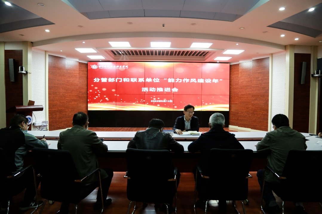 为深入贯彻我校“能力作风建设年”活动的安排部署, 5月13日,副校长刘守义在四号实训楼四楼演播厅召开了分管部门和联系单位“能力作风建设年”活动推进会。图书馆、学报编辑部、信息化管理办公室、基本建设办公室、资产经营管理中心、基础部、体育部全体中层干部参加了会议。