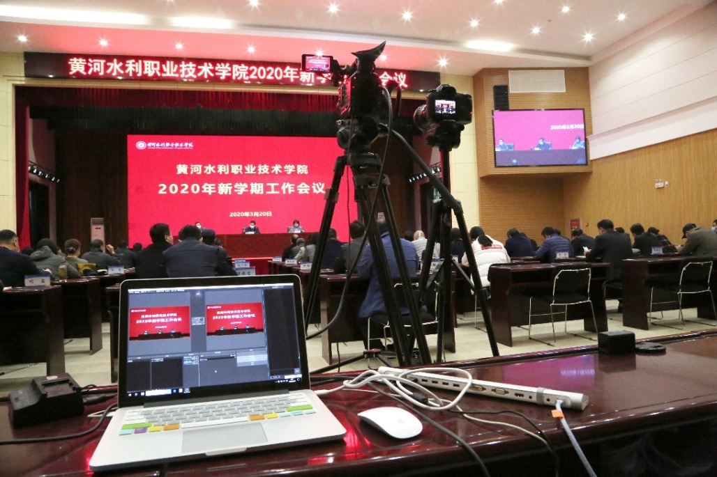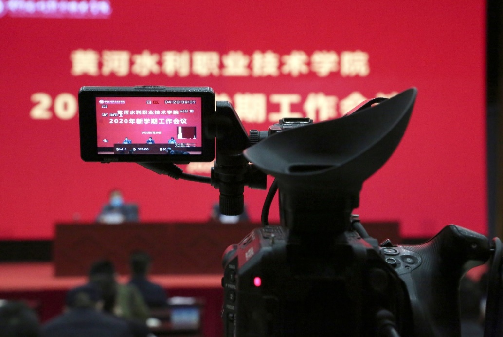此次会议要求全体校领导和中层正职现场参会,中层副职、科级干部以及教研室和实训室主任线上参会,观看直播。我们又加紧和直播平台的对接以及对网络严格监控保证会议当天直播的顺利进行。同时多机位全程录制会议,并在会议结束后第一时间剪辑发布到学校数字资源平台的水院新闻栏目,供老师们回看继续深刻领悟会议精神。